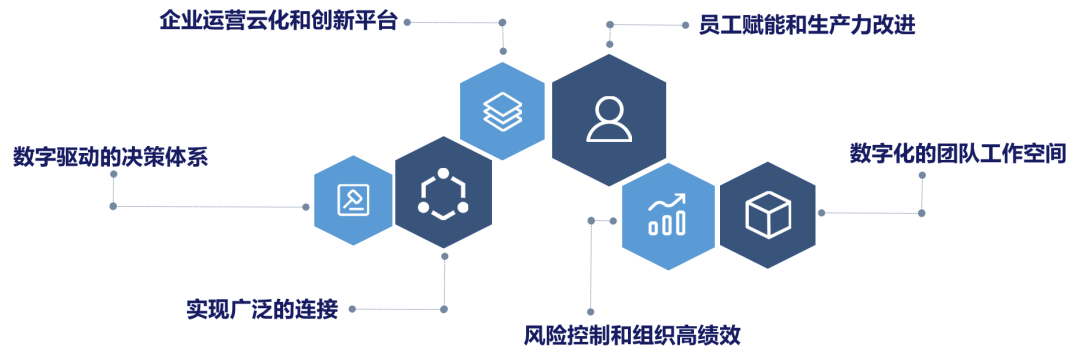 致远软件COP集合赋能的管理思想、新型的IT治理架构、敏捷的运营体系以及若干个性定制的应用,从而帮助企业锻造高效运营的能力,彻底改变传统OA等软件的单一管理模式,全面协同打破孤岛实现业务之间的彼此关联,这将有效助力企业实现数字生产力的解放和新跃升,驱动企业快速数智化转型,成就高绩效组织。