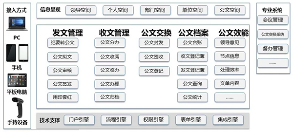 遵循国家规范的收发文、交换和文档管理一体化等制度,提供完备的电子公文管理功能,包括:公文应用设置、发文管理、收文管理、公文督办、公文查询、公文统计、公文档案等。
