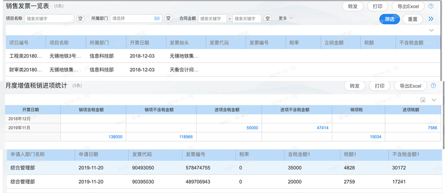 致远OA税务业务:根据销售开票与报销支付类流程自动生成企业发票池,为企业税收筹划做好基础数据准备。