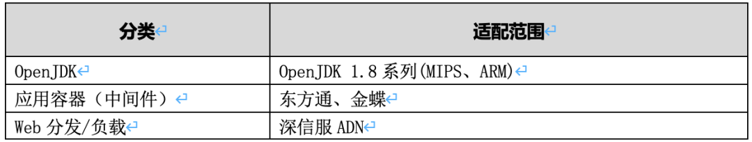 中间件是介于应用系统和系统软件之间的一类软件,它使用系统软件所提供的基础服务功能,衔接网络上应用系统的各个部分或不同的应用,达到资源共享、功能共享的目的。致远软件A8-N协同运营平台采用JAVA语言开发,在信创化中间件适配方面主要包含OpenJDK、应用容器、Web分发/负载等。