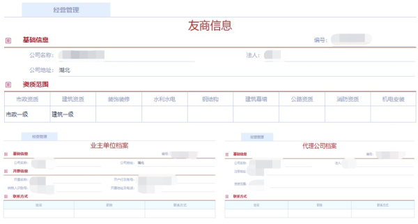 经营管理平台可以记录友商、业主及代理公司档案情况,为以后进行项目分析、竞争分析或者投标提供重要的数据参考依据。