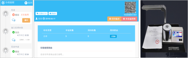 在用印过程中,平台全程记录、留痕留底,可以责任到人,降低违规用印风险,让印章使用更安全,管理更智慧!