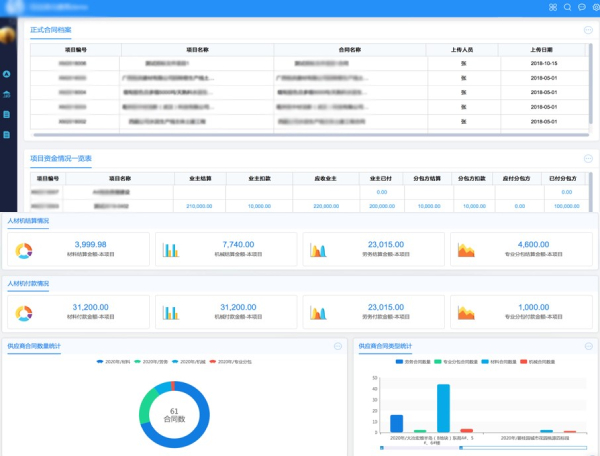 致远互联合同管理平台可以与项目、分包分供方、材料、劳务等信息紧密相连,打造基于合同的主数据档案平台,方便相关信息灵活调用。