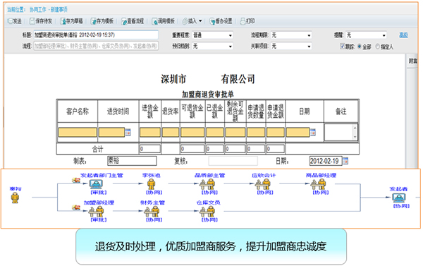 协同办公平台是企业信息化应用体系的重要组成部分,要体现总部对下属单位的管控要求,同时也要符合二、三级单位综合办公管理的实际需要。建立企业统一的综合办公平台,强化企业总部管控职能,贯通企业总部与各级单位(门店)的办公业务,规范办公业务流程,实现高效的业务协同,保障企业政令畅通,有效地推进工作监督和落实,使各职能部门和各级单位围绕整体利益最大化的目标,上下联动、整体协同,从而提升全企业整体管理能力,控制生产经营风险,实现一体化运作,促进企业整体利益最大化。