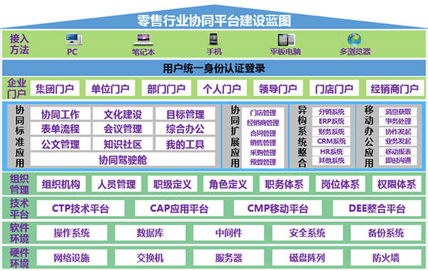 提供全面的零行业系统办公平台:包括信息门户、沟通管理、知识管理、文化建设、协同沟通、流程管理、门店管理、经销商管理等。